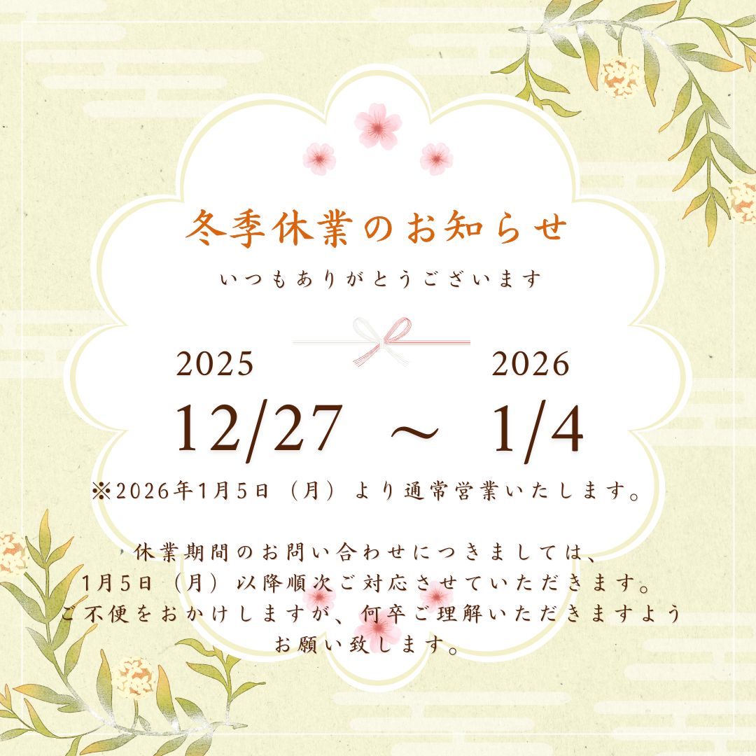 休業期間のお問い合わせにつきましては、1月5日(月)以降順次ご対応させて